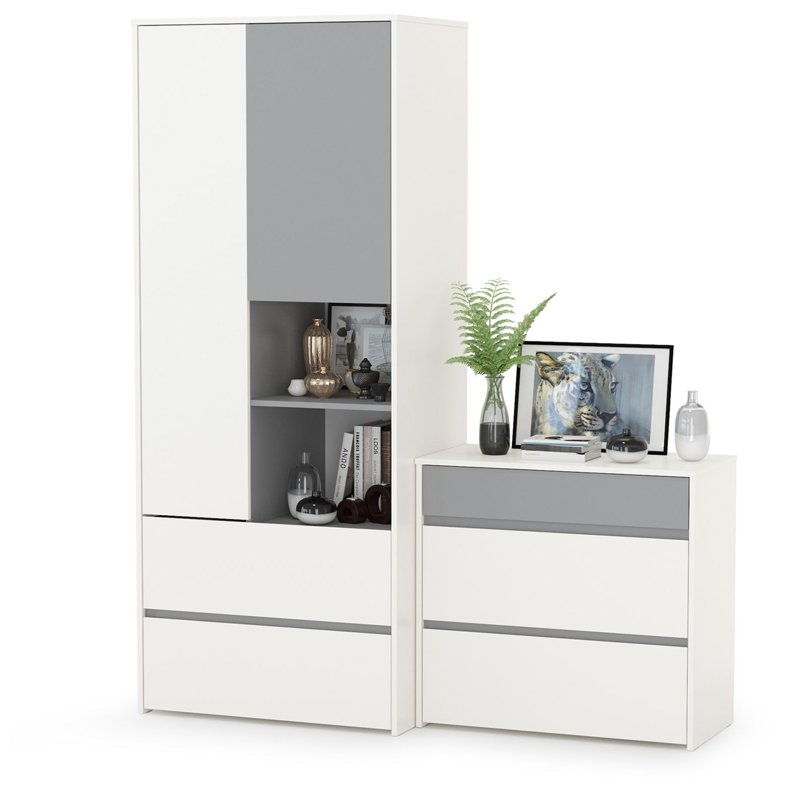 Выполнен в 2-х цветах: белый шагрень/дуб крафт золотой и серый графит/дуб крафт золотой.