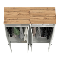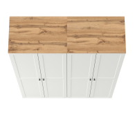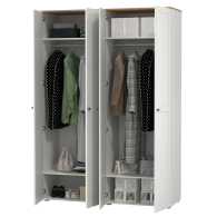 Комплектация состоит из двух шкафов Остин 13.224. Два шкафа объединены интегрированы в единое блок, обеспечивая практичное решение для организации хранения. Каждый шкаф с двумя распашными дверьми предлагает удобное решение для хранения вашей одежды и аксессуаров. В его верхней части устроена антресольная полка. Под ней горизонтальная штанга для одежды на плечиках, снизу полка и ниша. Макс. нагрузка на каждую полку - 5 кг. Двери оснащены 4хшарнирными петлями без доводчиков. Мебель оснащена регулируемыми опорами, выполненными из серого пластика. Лицевая фурнитура в виде черных аккуратных ручек. Изготовлена мебель из ЛДСП 16 мм, торцы окромлены ПХВ плёнкой. Фасады из рамочного профиля из МДФ со вставками ДВПО с узором. Поставляется в разобранном виде.