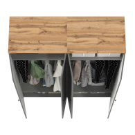 Комплектация состоит из двух шкафов Остин 13.224. Два шкафа объединены интегрированы в единое блок, обеспечивая практичное решение для организации хранения. Каждый шкаф с двумя распашными дверьми предлагает удобное решение для хранения вашей одежды и аксессуаров. В его верхней части устроена антресольная полка. Под ней горизонтальная штанга для одежды на плечиках, снизу полка и ниша. Макс. нагрузка на каждую полку - 5 кг. Двери оснащены 4хшарнирными петлями без доводчиков. Мебель оснащена регулируемыми опорами, выполненными из серого пластика. Лицевая фурнитура в виде черных аккуратных ручек. Изготовлена мебель из ЛДСП 16 мм, торцы окромлены ПХВ плёнкой. Фасады из рамочного профиля из МДФ со вставками ДВПО с узором. Поставляется в разобранном виде.