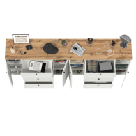 Выполнена в 3-х цветах: белый шагрень/дуб крафт золотой, серый графит/дуб крафт золотой и белый шагрень/серый графит/дуб крафт золотой.