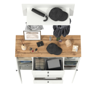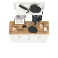 Комплектация состоит из комода Остин 16.221 и вешалки Остин 15.12. Комод имеет три части - центральная - это 4 выдвижных ящика, по бокам расположены закрытые распашными дверками ниши с двумя полками в каждой. В комоде предусмотрены съемные полки. Навесная вешалка с 4 двухрожковыми крючками и полкой для головных уборов. Полка для головных уборов расположена над крючками и поддерживается двумя металлическими элементами. Максимальная нагрузка на каждый крючек - 1,5 кг, на полку - 5 кг. Вешалка Остин 15.12 рассчитана для малогаборитных помещений (прихожих, балконов), по приемлемой цене. Скрытые направляющие выдвижных ящиков предназначены для обеспечения мягкого и плавного закрывания. Эти направляющие интегрированы таким образом, что они незаметны с внешней стороны, обеспечивая эстетичный внешний вид и комфортное использование мебели. Двери оснащены 4хшарнирными петлями без доводчиков, что обеспечивает простоту использования. Мебель оснащена регулируемыми опорами, выполненными из серого пластика. Лицевая фурнитура в виде черных аккуратных ручек. Изготовлена мебель из популярного материала - ламинированной ДСП 16 мм, торцы окромлены ПХВ плёнкой. Фасады выполнены из рамочного профиля из МДФ со вставками ДВПО с узором. Поставляется в разобранном виде, с комплектом фурнитуры, упакованная в 4-х слойный гофрокартон.