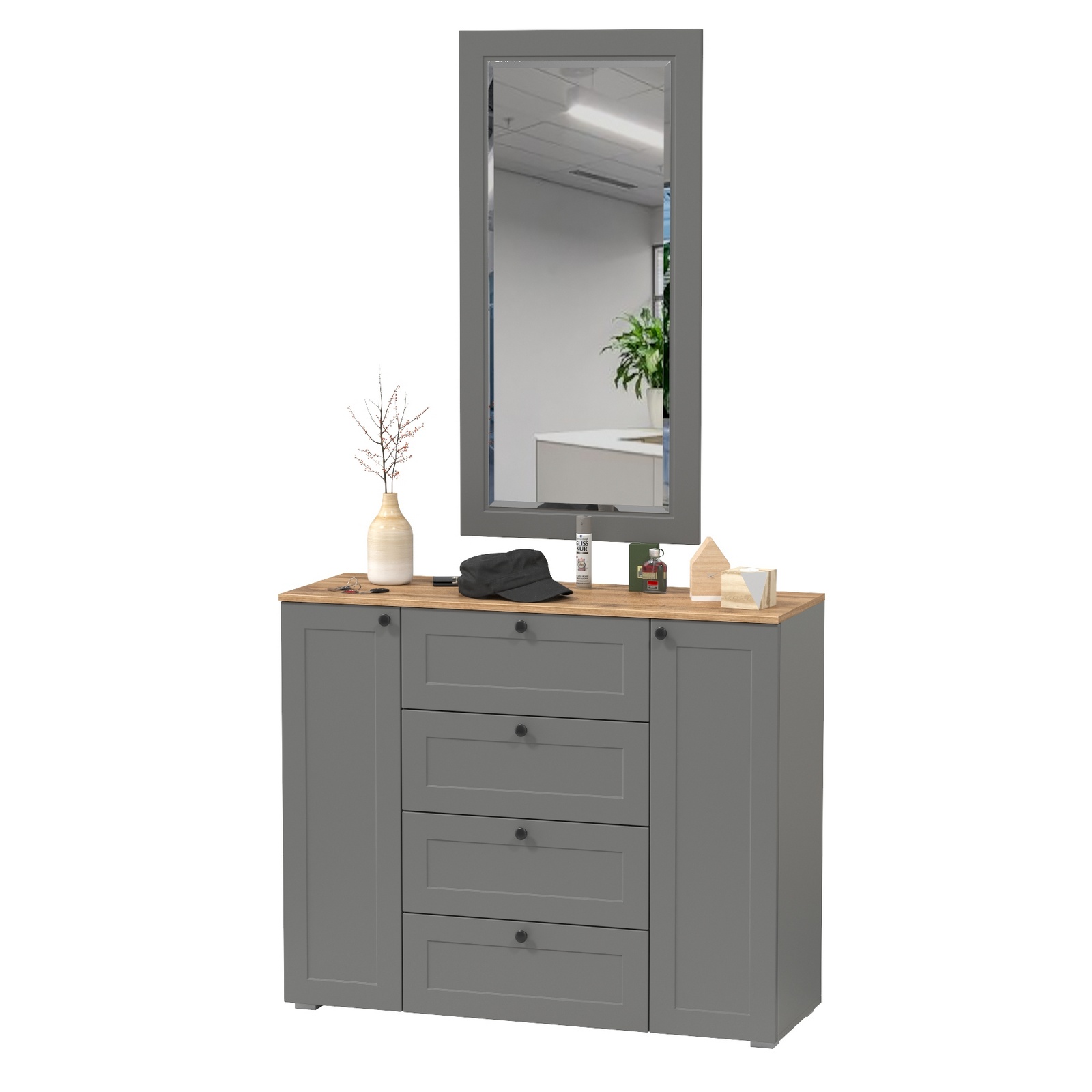 Отзывы о Столплит Большой комод с зеркалом Остин Графит софт/дуб ирландский