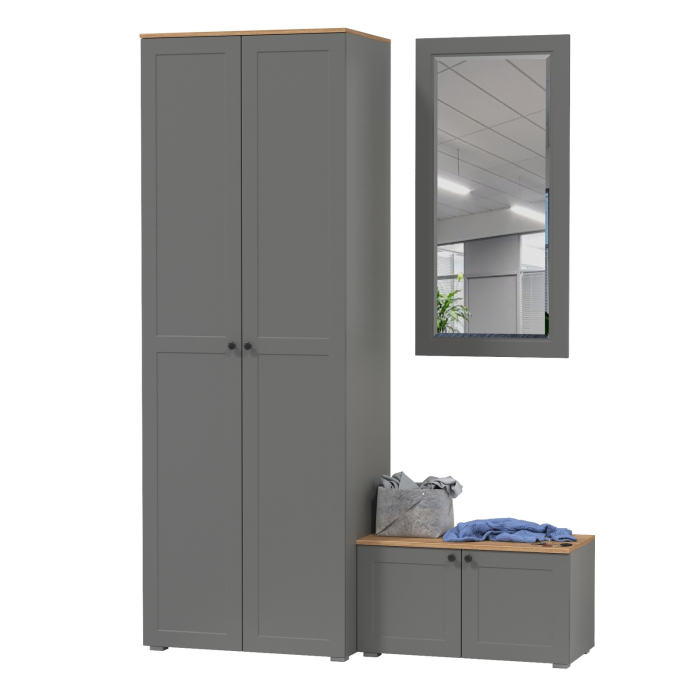 Отзывы о Столплит Тумба две дверки и шкаф для одежды с зеркалом Остин Графит софт/дуб ирландский