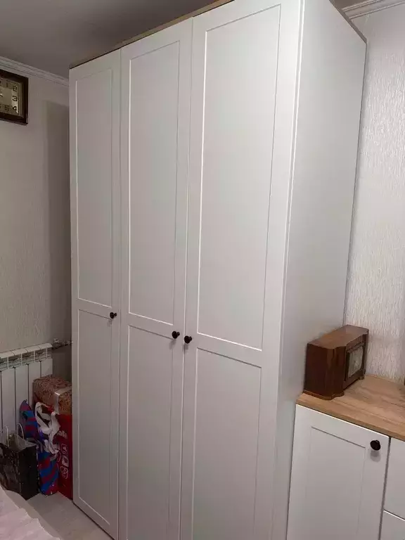 Комплектация состоит из пенала Остин 13.225 и шкафа Остин 13.224. Пенал имеет распашную дверь и внутри расположено шесть полок. Макс. нагрузка на каждую полку - 5 кг. Пенал имеет два варианта наполнения - 6 полок или штанга с антресольной и нижней полочками. 4 центральные полочки являются съемными и при необходимости, Вы оперативно можете переоборудовать пенал, установив штангу для одежды на плечиках. Универсальная сборка двери - может быть установлена как на левую, так и на правую сторону. Шкаф с двумя распашными дверьми предлагает удобное решение для хранения вашей одежды и аксессуаров. В его верхней части устроена антресольная полка. Под ней горизонтальная штанга для одежды на плечиках, снизу полка и ниша. Макс. нагрузка на каждую полку - 5 кг. Скрытые направляющие выдвижных ящиков. Двери оснащены 4хшарнирными петлями без доводчиков. Мебель оснащена регулируемыми опорами, выполненными из серого пластика. Лицевая фурнитура в виде черных аккуратных ручек. Изготовлена мебель из ЛДСП 16 мм, торцы окромлены ПХВ плёнкой. Фасады из рамочного профиля из МДФ со вставками ДВПО с узором. Поставляется в разобранном виде.