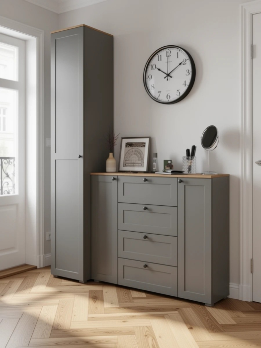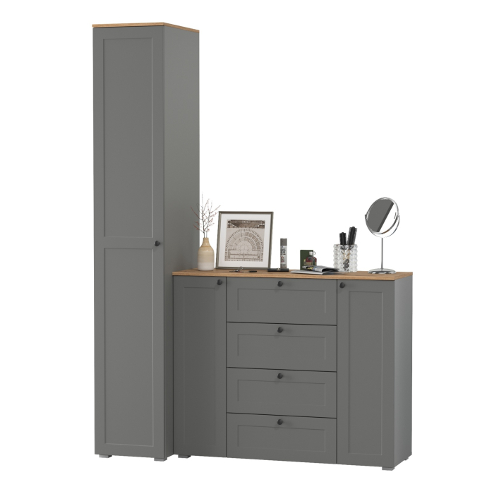 Отзывы о Столплит Шкаф-пенал и комод четыре ящика Остин Графит софт/дуб ирландский