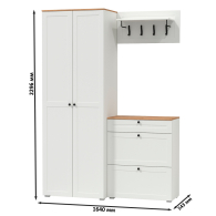 Комплектация состоит из шкафа Остин 13.224, тумбы для обуви Остин 16.121 и вешалки Остин 15.12. Шкаф с двумя распашными дверьми предлагает удобное решение для хранения вашей одежды и аксессуаров. В его верхней части устроена антресольная полка. Под ней горизонтальная штанга для одежды на плечиках, снизу полка и ниша. Макс. нагрузка на каждую полку - 5 кг. Тумба с выдвижным ящиком и 2 откидными дверками с полками для 12 пар обуви снизу. Каждая откидная дверь расчитана для 6 пар невысокой обуви. Макс. нагрузка на каждую полку и ящик - 3 кг. Навесная вешалка с 4 двухрожковыми крючками и полкой для головных уборов. Полка для головных уборов расположена над крючками и поддерживается двумя металлическими элементами. Макс. нагрузка на каждый крючек - 1,5 кг, на полку - 5 кг. Скрытые направляющие выдвижных ящиков. Двери оснащены 4хшарнирными петлями без доводчиков. Мебель оснащена регулируемыми опорами, выполненными из серого пластика. Лицевая фурнитура в виде черных аккуратных ручек. Изготовлена мебель из ЛДСП 16 мм, торцы окромлены ПХВ плёнкой. Фасады из рамочного профиля из МДФ со вставками ДВПО с узором. Поставляется в разобранном виде.