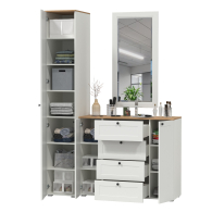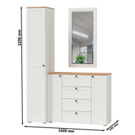 Комод четыре ящика и две дверки с пеналом для прихожей и зеркалом Остин Код I0000385066