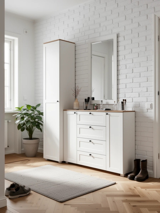 Комод 4 ящика и две дверки с пеналом для прихожей и зеркалом Остин.