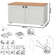Комплектация состоит из двух пеналов Остин 13.225, тумбы Остин 13.257 и зеркала Остин 17.03. Каждый пенал имеет распашную дверь и внутри расположено шесть полок. Макс. нагрузка на каждую полку - 5 кг. Каждый шкаф-пенал имеет два варианта наполнения - 6 полок или штанга с антресольной и нижней полочками. 4 центральные полочки являются съемными и при необходимости, Вы оперативно можете переоборудовать пенал, установив штангу для одежды на плечиках. Универсальная сборка дверей - могут быть установлены как на левую, так и на правую сторону. За распашными дверками тумбы находятся два отделения, в каждом из которых имеются полки, расположенные по центру. В тумбе предусмотрены съемные полки, для высокой обуви. Навесное зеркало на панели из рамочного профиля МДФ. Зеркальное полотно имеет декоративный скос. Зеркало возможно повесить как горизонтально, так и вертикально. Скрытые крепежи зеркала. Скрытые направляющие выдвижных ящиков. Двери оснащены 4хшарнирными петлями без доводчиков. Мебель оснащена регулируемыми опорами, выполненными из серого пластика. Лицевая фурнитура в виде черных аккуратных ручек. Изготовлена мебель из ЛДСП 16 мм, торцы окромлены ПХВ плёнкой. Фасады из рамочного профиля из МДФ со вставками ДВПО с узором. Поставляется в разобранном виде.