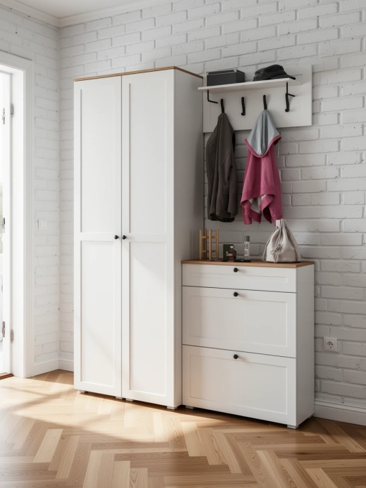 Два шкаф-пенала с полками и обувница с вешалкой для верхней одежды Остин.