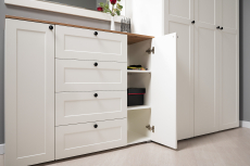 Комплектация состоит из двух шкафов Остин 13.224, комода Остин 16.221, тумбы для обуви Остин 16.121, вешалки Остин 15.12 и зеркала Остин 17.03.