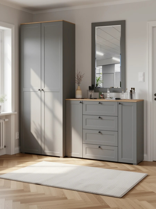 Отзывы о Столплит Комод с зеркалом и шкафом для прихожей Остин Графит софт/дуб ирландский