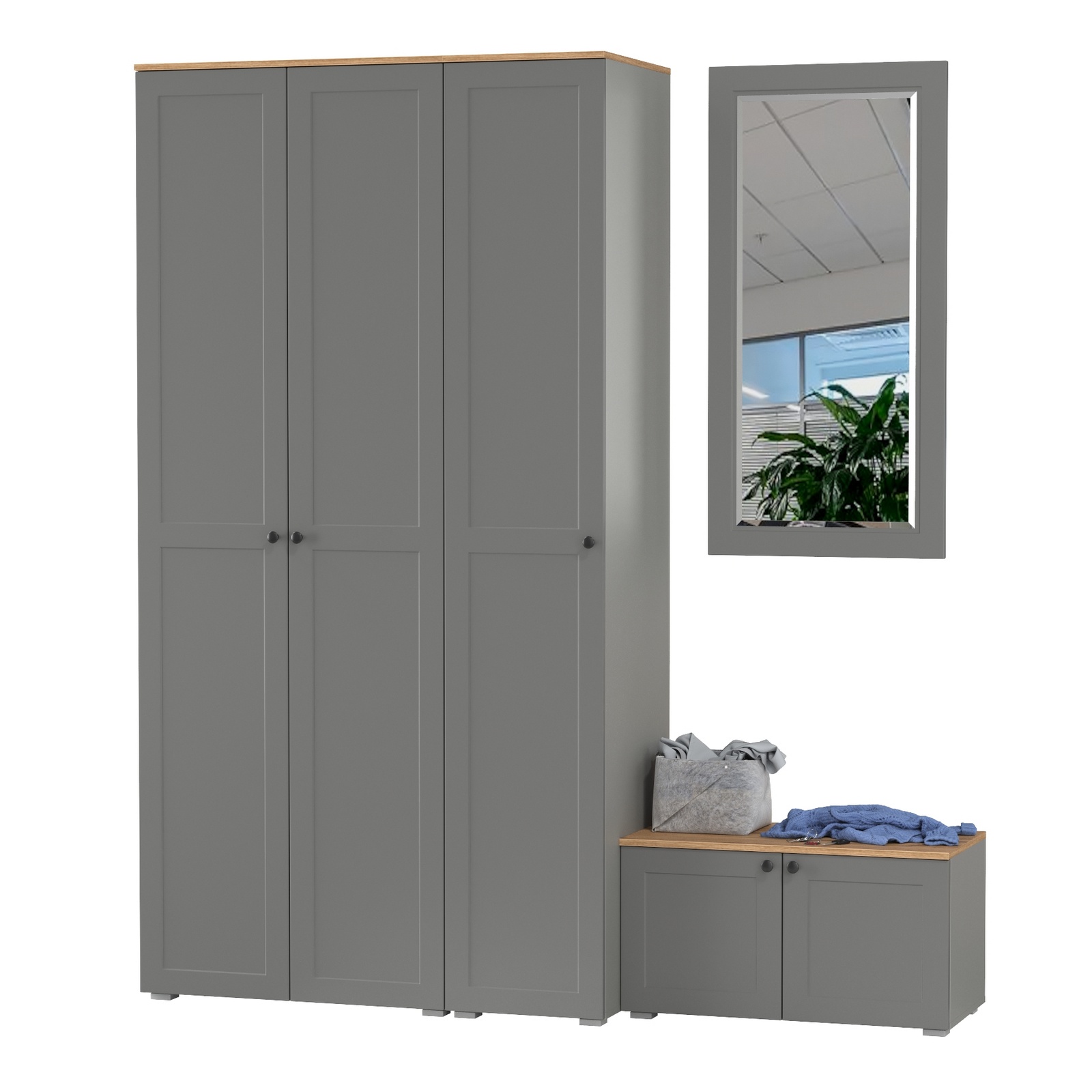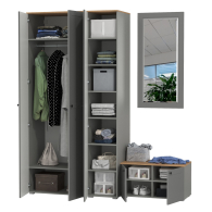 Отзывы о Столплит Шкаф 2-х дверный с тумбой и зеркалом и пеналом для прихожей Остин Графит софт/дуб ирландский