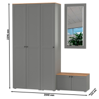 Шкаф 2-х дверный с тумбой и зеркалом и пеналом для прихожей Остин.