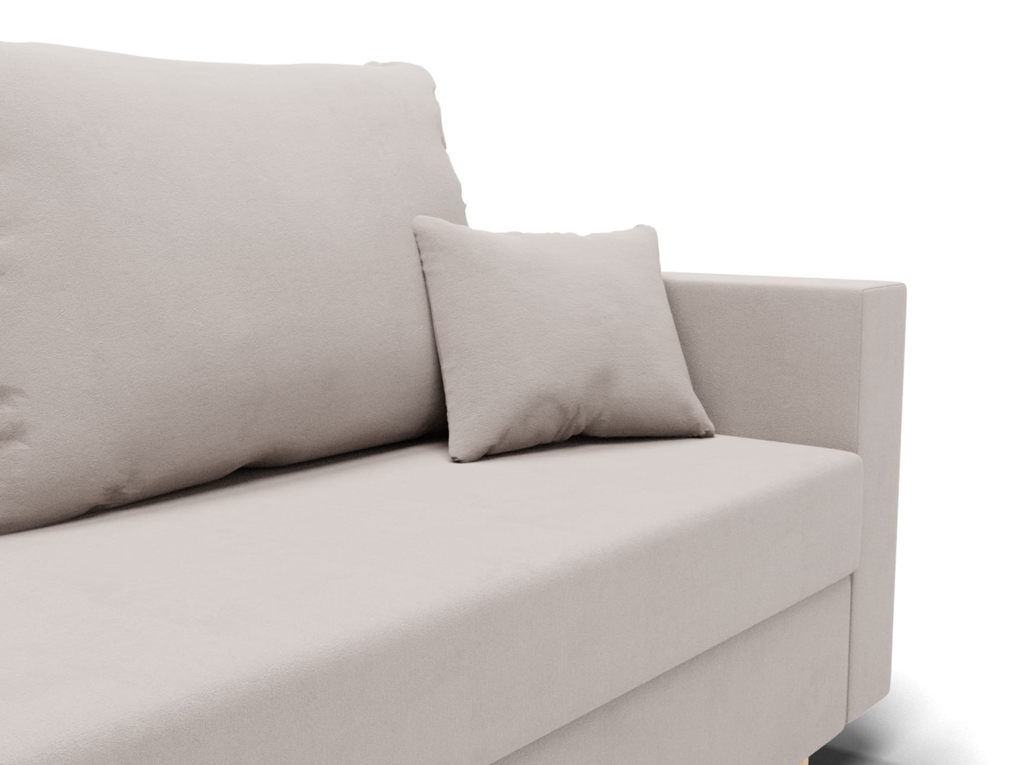Диван оснащен съемными подушками, что позволяет легко адаптировать его под ваши потребности. Его высота и глубина обеспечивают комфортную посадку, а спальная зона позволяет разместить до двух человек.