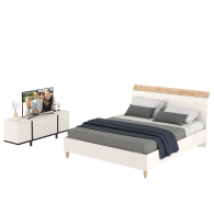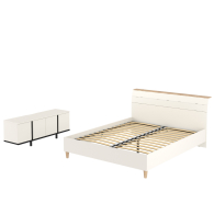 В этот комплект входит двуспальная кровать Муссон 11.41 и тумба для ТВ 13.276. Выбирая двуспальную кровать Муссон Муссон 11.41 - Вы выбираете крепкий сон и уют. Двухспальная кровать с жестким изголовьем со спальным местом 1600х2000 мм подарит возможность отдыхать в нескончаемом комфорте. Планкованное изголовье с изгибом — два варианта конфигурации - с полкой и без неё. Кровать оснащена ортопедическим основанием с ламелям для матраса 1600х2000 мм. Максимальная нагрузка на каждое спальное место 100 кг, общая - 200 кг. Матрас для этой модели кровати приобретаются отдельно. Рекомендованная высота матраса от 180 мм. По центру основания имеется металлическая, изножье оснащено деревянными опорами. Комбинация сочетания исполнения с нежными цветовыми акцентами придает кровати выразительную элегантность. Современная тумба под ТВ придётся по вкусу любителям чёрно-белых акцентов в оформлении интерьера. Особый акцент данной модели - наличие металлических деталей, опор из окрашенного металла и декоративные элементы на фасадной части тумбы из анодированного алюминия. Визуально плита ДСП имеет глубокое тиснение шагрень, а белый цвет фасадов удачно подчёркивает его.