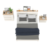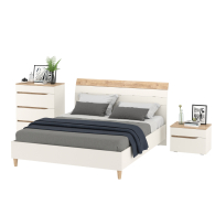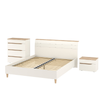 В этот комплект входит двуспальная кровать Муссон 11.41, прикроватная тумбочка Муссон 16.03 и комод Муссон 13.97. Выбирая двуспальную кровать Муссон Муссон 11.41 - Вы выбираете крепкий сон и уют. Двухспальная кровать с жестким изголовьем со спальным местом 1600х2000 мм подарит возможность отдыхать в нескончаемом комфорте. Планкованное изголовье с изгибом — два варианта конфигурации - с полкой и без неё. Кровать оснащена ортопедическим основанием с ламелям для матраса 1600х2000 мм. Максимальная нагрузка на каждое спальное место 100 кг, общая - 200 кг. Матрас для этой модели кровати приобретаются отдельно. Рекомендованная высота матраса от 180 мм. По центру основания имеется металлическая, изножье оснащено деревянными опорами. Комбинация сочетания исполнения с нежными цветовыми акцентами придает кровати выразительную элегантность.