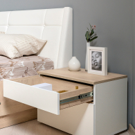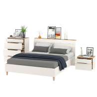 Муссон мебель для спальни: кровать 1600, основание, тумбочка и комод 4-ре ящика - функциональная мебель в небольшую спальню для любителей светлых интерьеров!