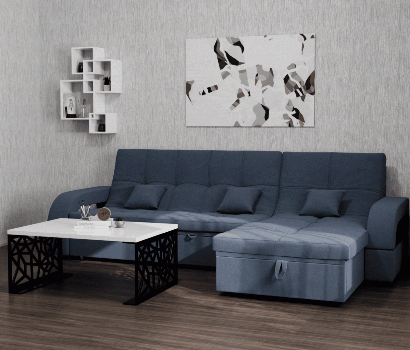 Он имеет высоту 97 см, ширину 268 см и глубину 175 см. Диван обладает универсальным расположением угла, что позволяет его использовать в любом помещении.