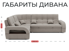 Он имеет высоту 97 см, ширину 187 см и глубину 268 см. Диван обладает универсальным расположением угла, что позволяет его использовать в любом помещении.