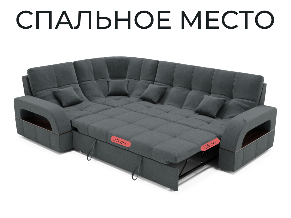 Спальное место имеет ширину 135 см и длину 211 см. Он предназначен для двух человек и имеет глубину сиденья 65 см. Максимальная нагрузка на диван составляет 280 кг.